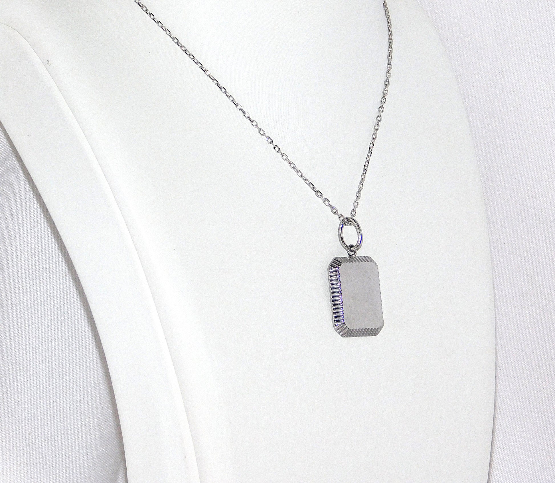 El collar Nova simboliza luz, fuerza y nuevos comienzos. Su placa rectangular con delicados detalles en relieve, elaborada en acero inoxidable de alta calidad y disponible en acabado dorado y plateado, aporta un estilo contemporáneo y sofisticado.