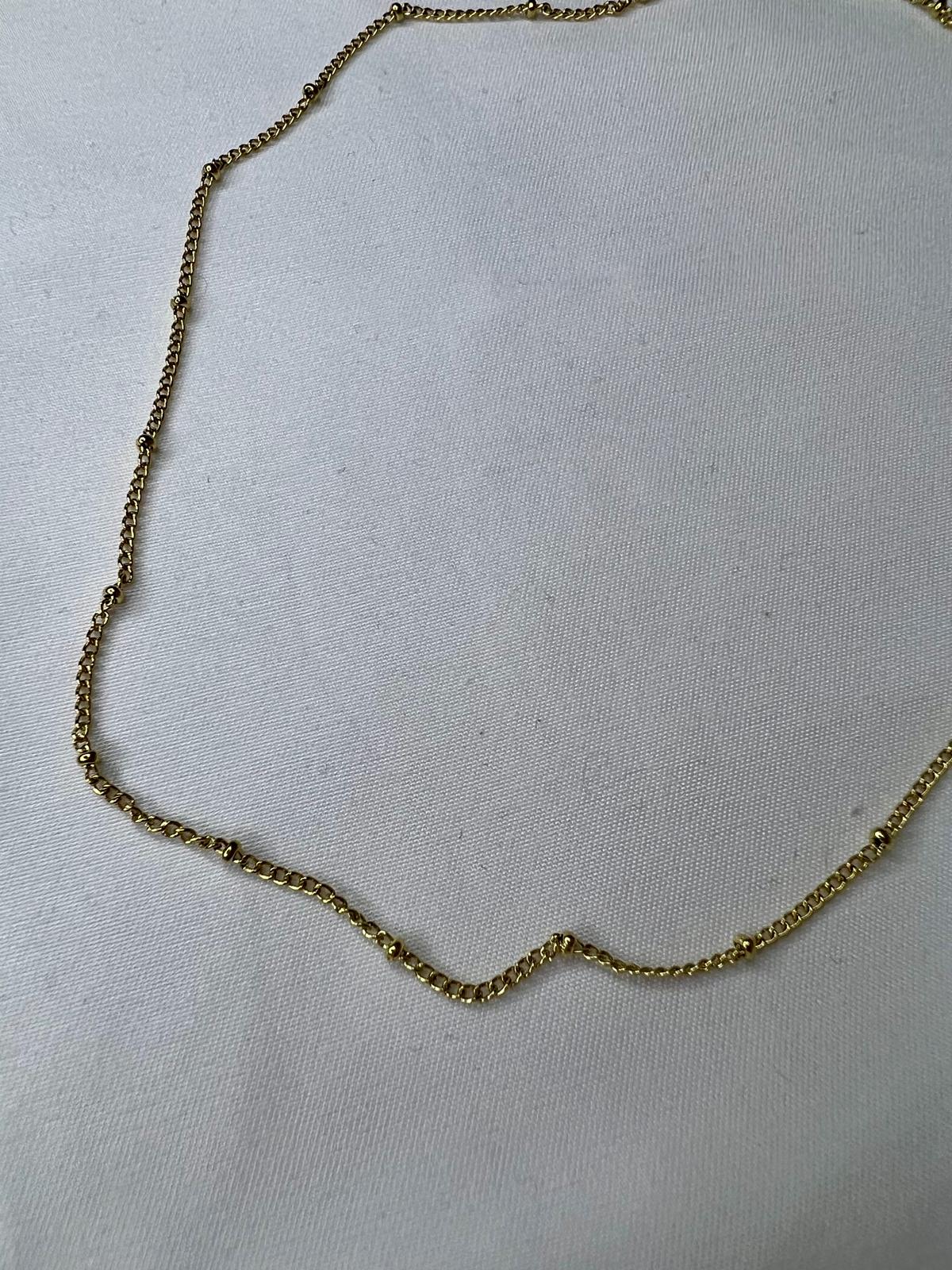 Su diseño minimalista con cadena de eslabones finos y delicadas bolitas distribuidas armoniosamente lo convierte en el accesorio perfecto para cualquier ocasión.