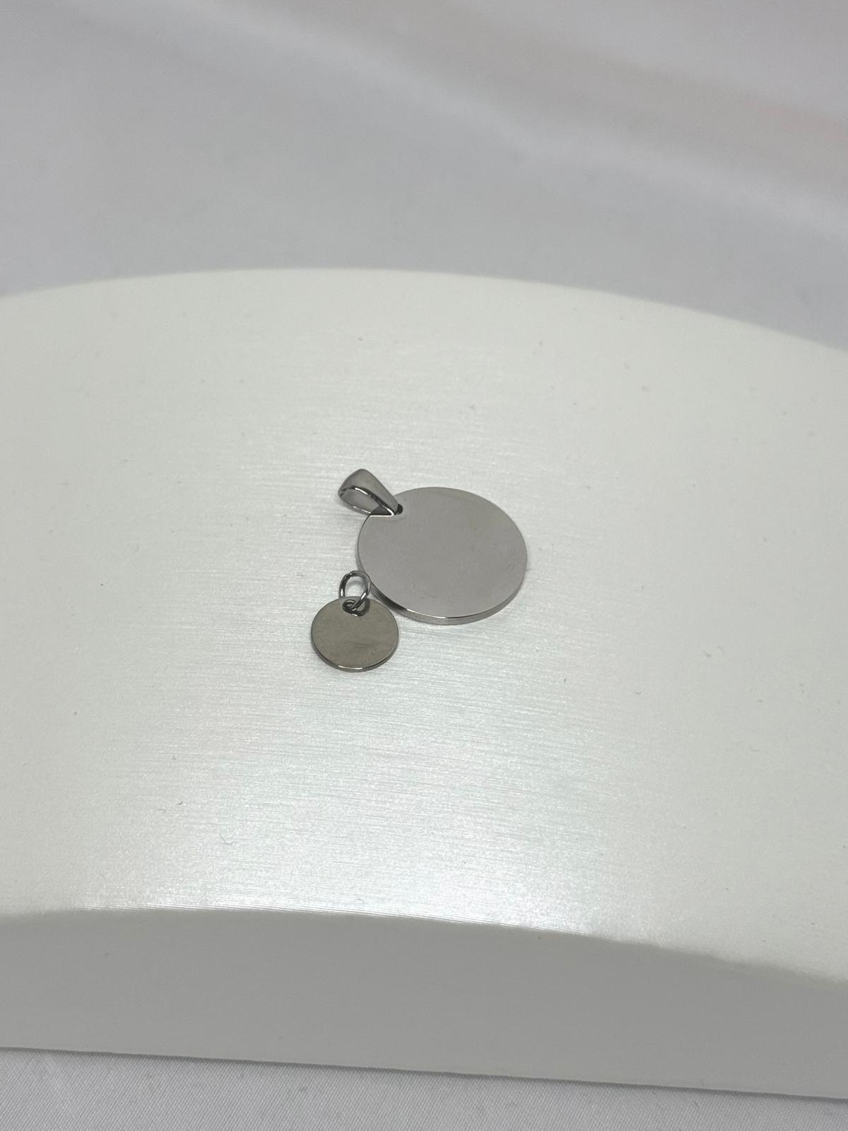 Um design intemporal e versátil. Este crachá redondo, disponível em dourado ou prateado, é ideal para dar um toque único e pessoal aos seus acessórios. Graças à sua superfície lisa, pode ser gravado com iniciais, símbolos ou mensagens especiais, o que o torna um acessório único e significativo.